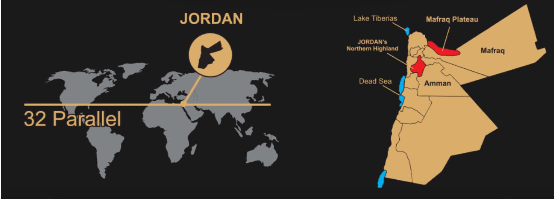 中東特有の気候と玄武岩質砂漠のミネラル豊富な土壌で育てられる厳選された40種類以上の世界的に有名な最高品質の葡萄の木々。